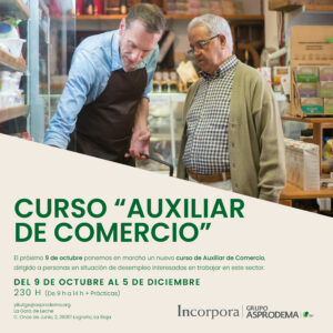 El próximo 9 de octubre ponemos en marcha un nuevo curso de Auxiliar de Comercio, dirigido a personas en situación de desempleo interesadas en trabajar en este sector.